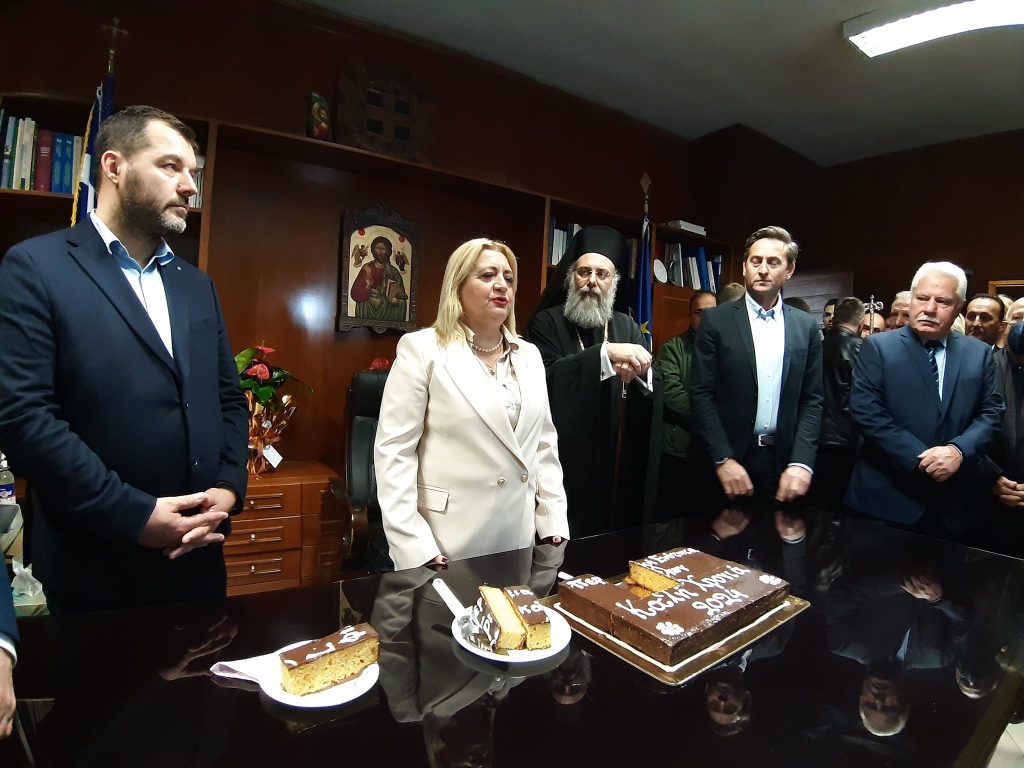 Η νέα αντιπεριφερειάρχης Τρικάλων Χριστούλα Ντιντή ανέλαβε δόξη και τιμή επίσημα τα καθήκοντά της και επανέφερε παλιές και αγαπημένες συνήθειες, συμβολικές. Έτσι ανήμερα τη Πρωτοχρονιά και μετά τη Δοξολογία άνοιξε το γραφείο της-απόντος του τέως αντιπεριφερειάρχη Χρήστου Μιχαλάκη-και υποδέχθηκε τον Σεβασμιώτατο κ. Χρυσόστομο αφενός, ο οποίος και ευλόγησε τη βασιλόπιτα, τις αρχές του τόπου δε. Στο πλευρό της οι περιφερειακοί σύμβουλοι Δημήτρης Δαλαμάγκας και Άρης Κολιός, παρών δε το όλον ΠΑΣΟΚ, με τον ιστορικό πρώτο αιρετό νομάρχη Τρικάλων Στέφο Πατραμάνη, τον τέως βουλευτή Χρήστο Μαγκούφη, τον εκλεγμένο και ατυχήσαντα βουλευτή Γιώργο Οικονόμου, τον επικεφαλής της αξιωματικής αντιπολίτευσης του Δήμου Μετεώρων Σωτήρη Παπαχρήστο κ.α..