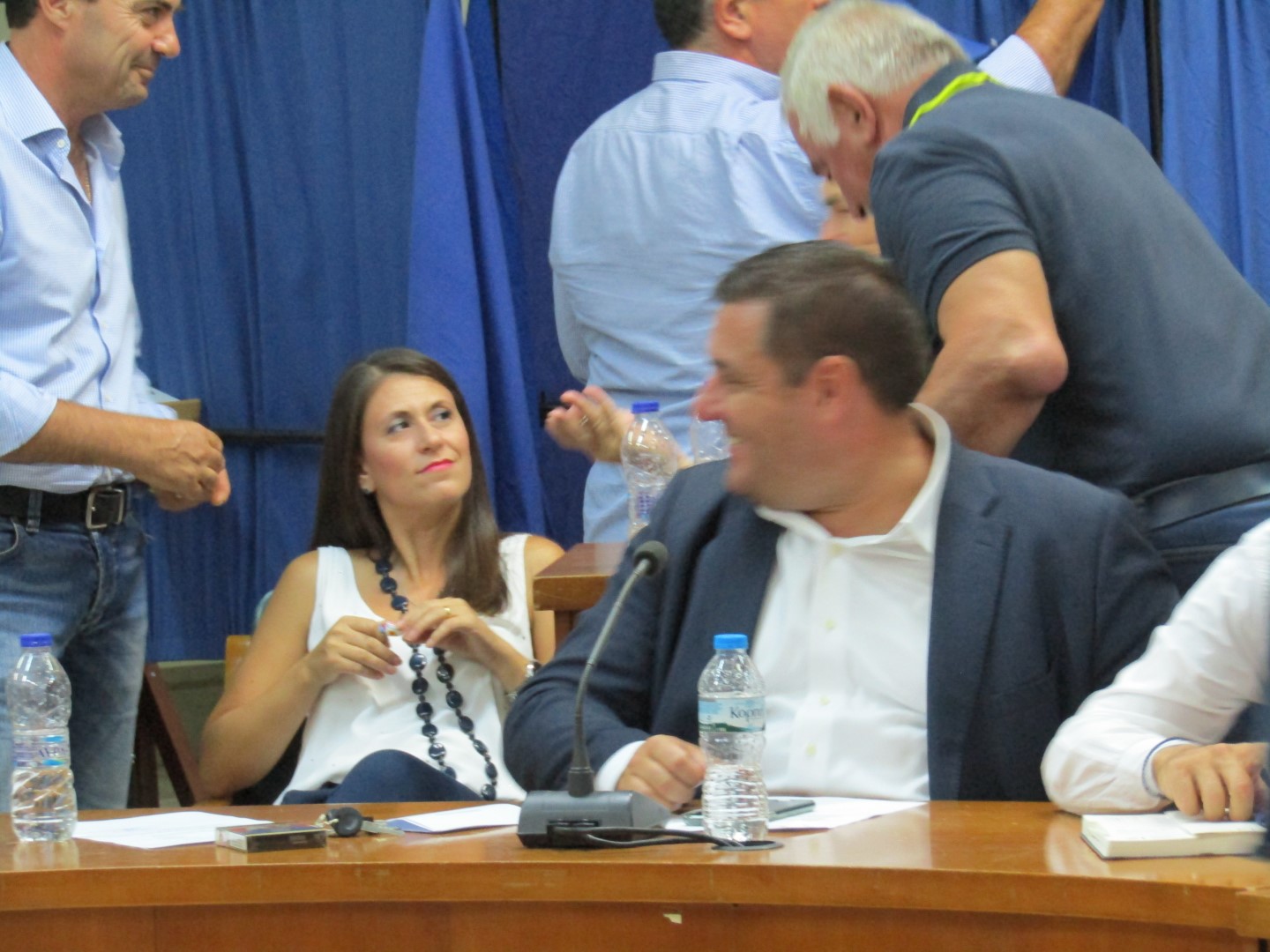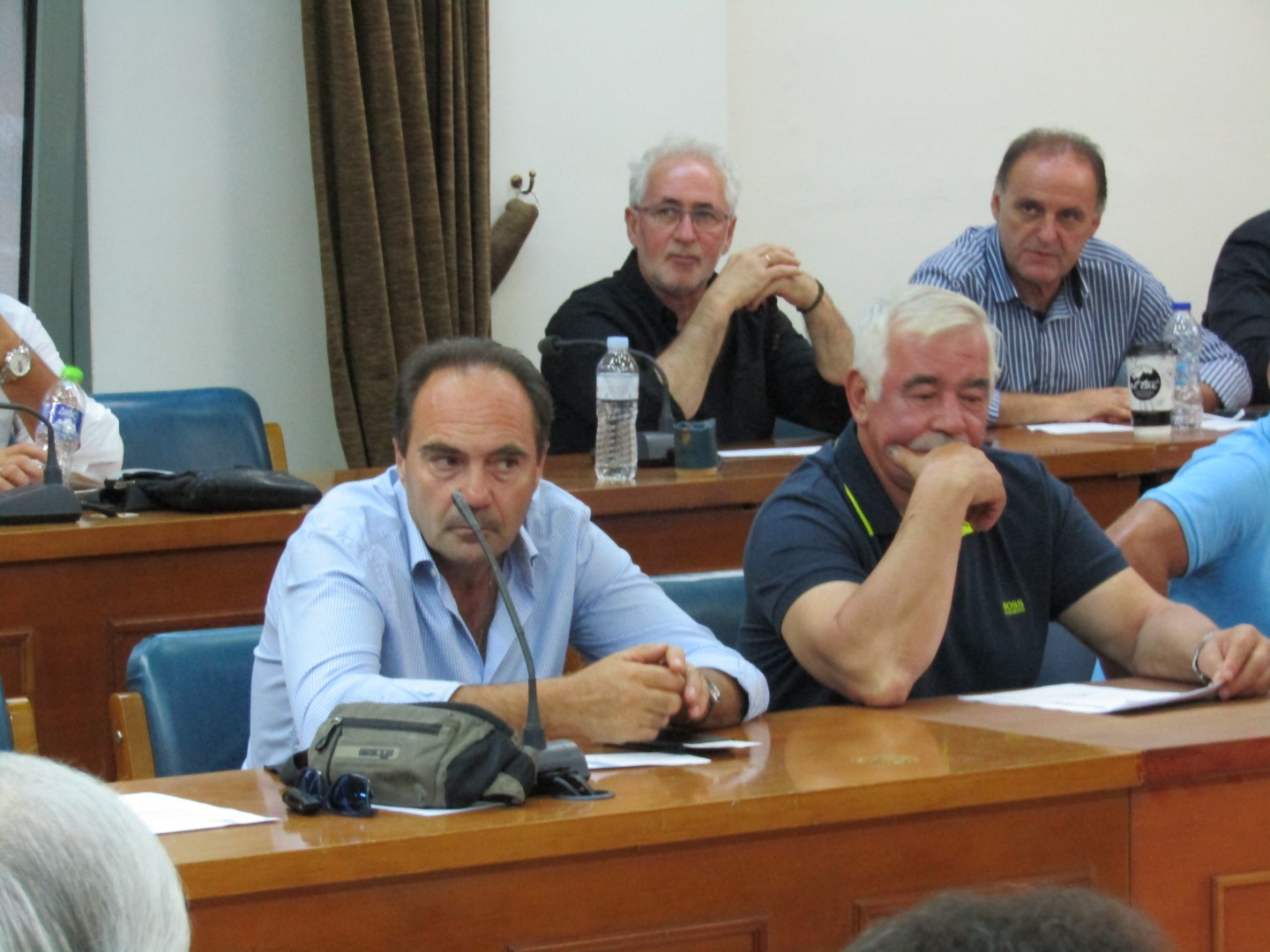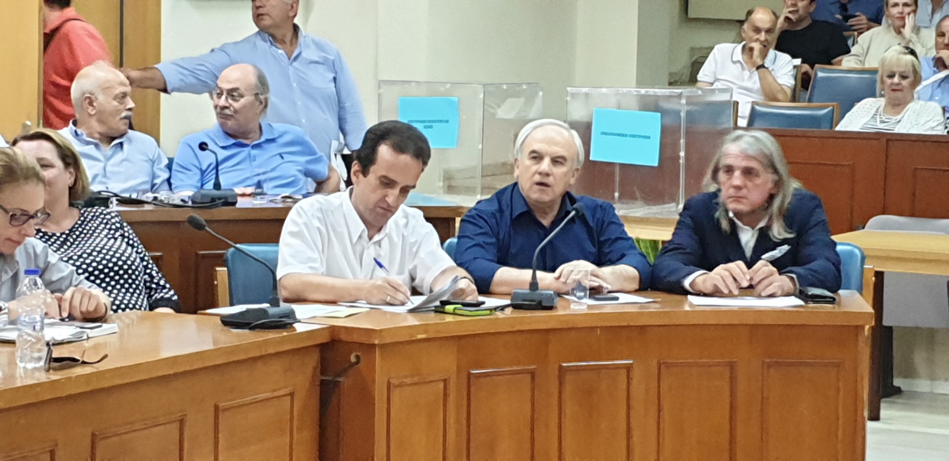 Η παράταξη Κρεμμύδα κατέλαβε τις θέσεις πάνω δεξιά (όπως παλιά) συν μια θέση στα κάτω έδρανα, μπροστά και δεξιά. Ακριβώς δίπλα η παράταξη Μπετσιμέα και τέρμα κάτω δεξιά ο Σπήλιος Τσιγάρας και η παράταξη Μητσιούλη. Πάνω δεξιά, κλασσικά, η «Λαϊκή Συσπείρωση» του Καϊκη. Δείτε φωτό από όσα έγιναν χθες στο… περιθώριο της συνεδρίασης.