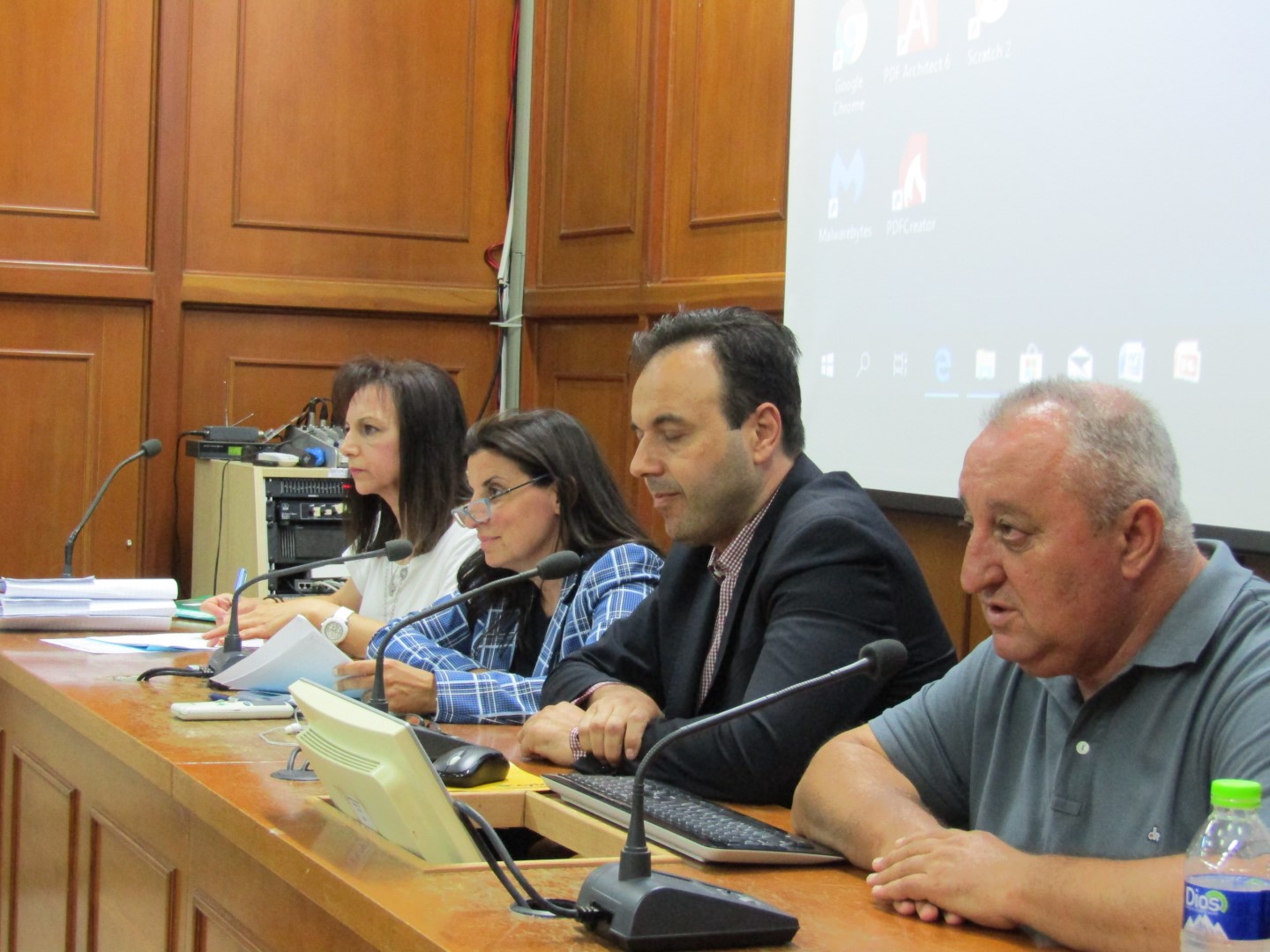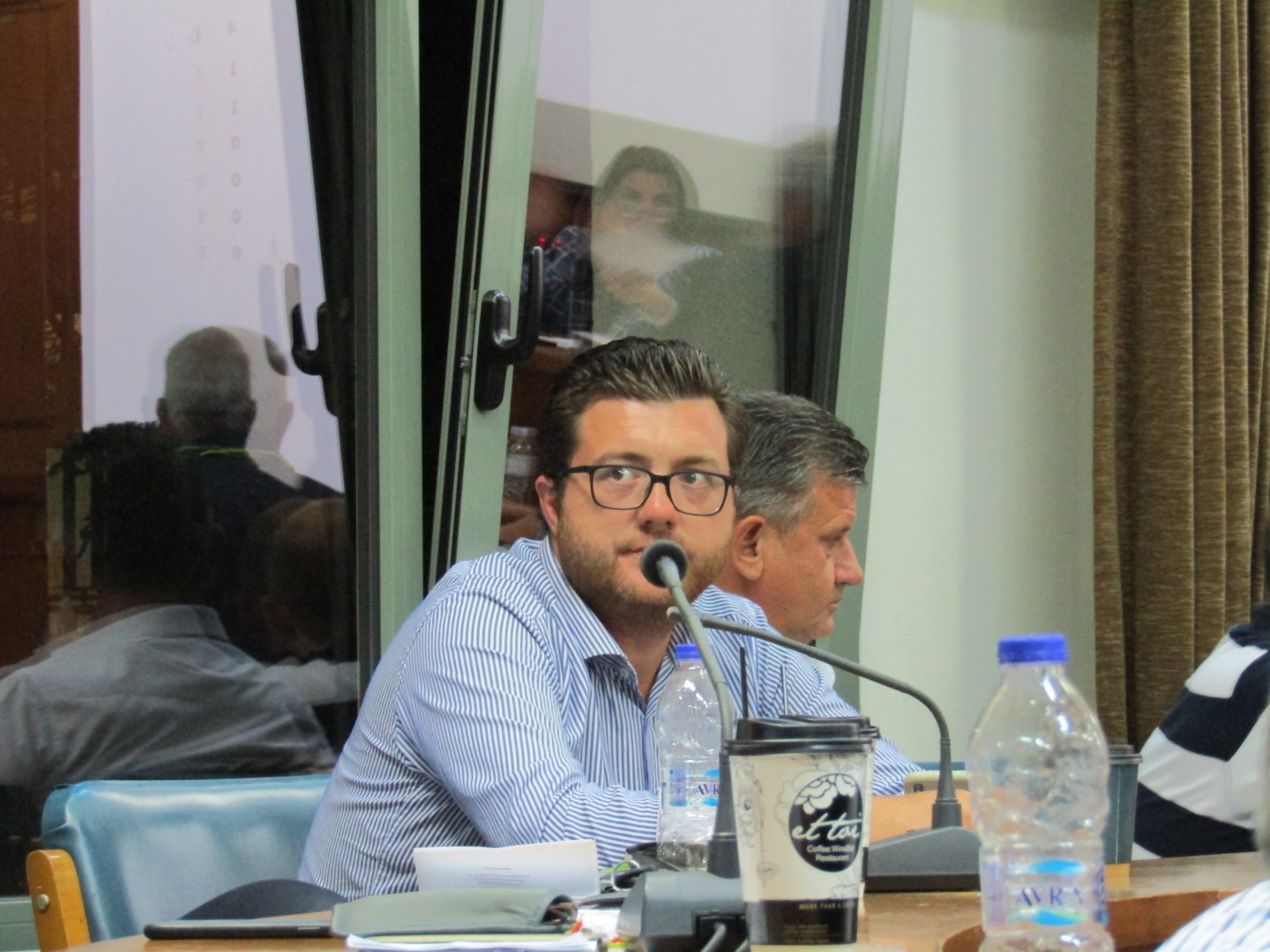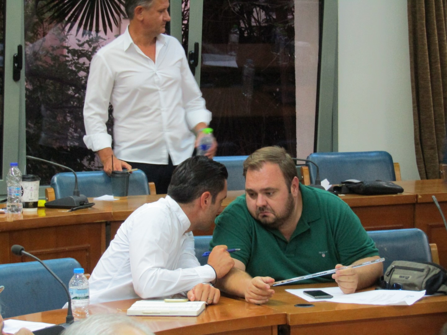 Η παράταξη Κρεμμύδα κατέλαβε τις θέσεις πάνω δεξιά (όπως παλιά) συν μια θέση στα κάτω έδρανα, μπροστά και δεξιά. Ακριβώς δίπλα η παράταξη Μπετσιμέα και τέρμα κάτω δεξιά ο Σπήλιος Τσιγάρας και η παράταξη Μητσιούλη. Πάνω δεξιά, κλασσικά, η «Λαϊκή Συσπείρωση» του Καϊκη. Δείτε φωτό από όσα έγιναν χθες στο… περιθώριο της συνεδρίασης.