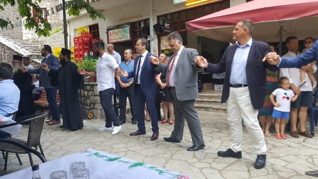 Χαιρέτησαν κόσμο, έφαγαν αρνάκι, ήπιαν τσίπουρα και μπύρες και… χόρεψαν. Γιατί έτσι είναι η ζωή και τα πανηγύρια της!… Στις φωτό του trikalavoice.gr διακρίνονται μεταξύ άλλων ο Αναγνωστόπουλος να φέρνει γύρω, ο Σκρέκας να χαιρετάει λαό, ο Βενέτης να παίρνει ευχή απ’ τον Επίσκοπο Νάση, ο Ιωάννης Κουτσονάσιος ο ιατρός να χορεύει (βεβαίως-βεβαίως) και ο Μαράβας με τον “στύλο” του τον Ούτρα να… χαμογελάει!…