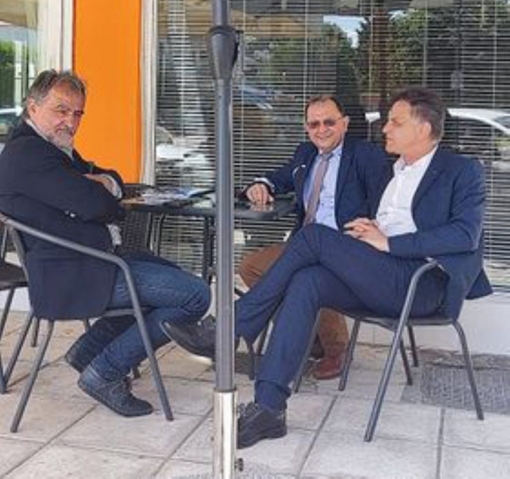Διακρίνονται οι περιφερειακοί σύμβουλοι-θεωρητικά αντίπαλοι- Σταύρος Τραγάνης και Ντίνος Μπάρδας, Χρήστος Γακόπουλος. Φαινομενικά η συνάντηση αυτή δε θα μπορούσε να είναι κάτι παραπάνω από “ένας φιλικός καφές”. Είναι έτσι όμως ή… πάμε παρακάτω; Όπως από καιρό έχει αποκαλύψει το trikalavoice.gr ο Σταύρος ο Τραγάνης κινείται σιωπηλώς για τη συγκρότηση ψηφοδελτίου στο Δήμο Τρικκαίων, ως επικεφαλής ο ίδιος. Ο Μπάρδας είναι κολλητός του και πολλές φορές έχει ειπωθεί το… “μαζί θα προχωρήσουμε”. Ο Γακόπουλος είναι… κολλητός του Μπάρδα και καλός φίλος του Τραγάνη. Κάντε την εξίσωση…