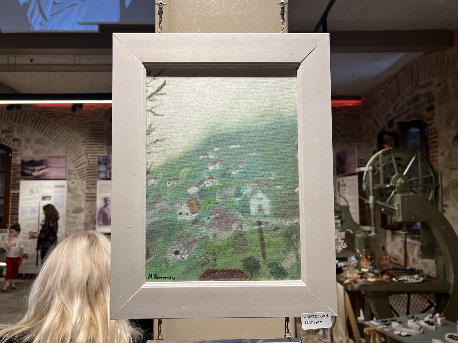 Ένα από αυτά είναι και η ζωγραφική, όπως διαπιστώσαμε ιδίοις όμμασι χθες στο Δίδυμο Οθωμανικό λουτρό όπου οι Τρικαλινοί ζωγράφοι εγκαινίασαν την έκθεση με τίτλο «στα μονοπάτια της τέχνης»!!!… Εκεί εκτίθεται έργο της εκ νέου υποψήφιας βουλευτού του ΣΥΡΙΖΑ Μαρίνας Κοντοτόλη, το οποίο χρονολογείται από το 2014. “Ήταν Οκτώβρης μήνας” θυμάται και διηγείται η ίδια στο trikalavoice.gr “μέρα βροχερή, με ομίχλη. Ανοίγοντας το παράθυρο του πατρικού μου σπιτιού, στο χωριό μου, στη Γλυκομηλιά, είδα μια εικόνα που ένιωσα την ανάγκη να την αποτυπώσω, όπως μπορούσα, χωρίς ιδιαίτερες γνώσεις και τεχνικές. Είναι από τις στιγμές που μιλάει η ψυχή μας”.
