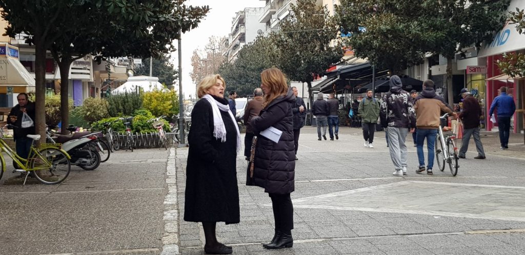 Οδηγίες προς τη νεαρά δικηγόρο Κατερίνα Παπακώστα από την πολύπειρη Σούλα Μερεντίτη. Η πρώην βουλευτίνα και η… εν δυνάμει υποψήφια βουλευτίνα (της Ν.Δ.) βρέθηκαν μια ηλιόλουστη μα κρύα μέρα τυχαία στην Ασκληπιού. Η mama Soula το έχει αυτό, να στέκεται, να νουθετεί και να κατευθύνει τους νεότερους. Η Κατερίνα ακούει… ευλαβικά πάντως…