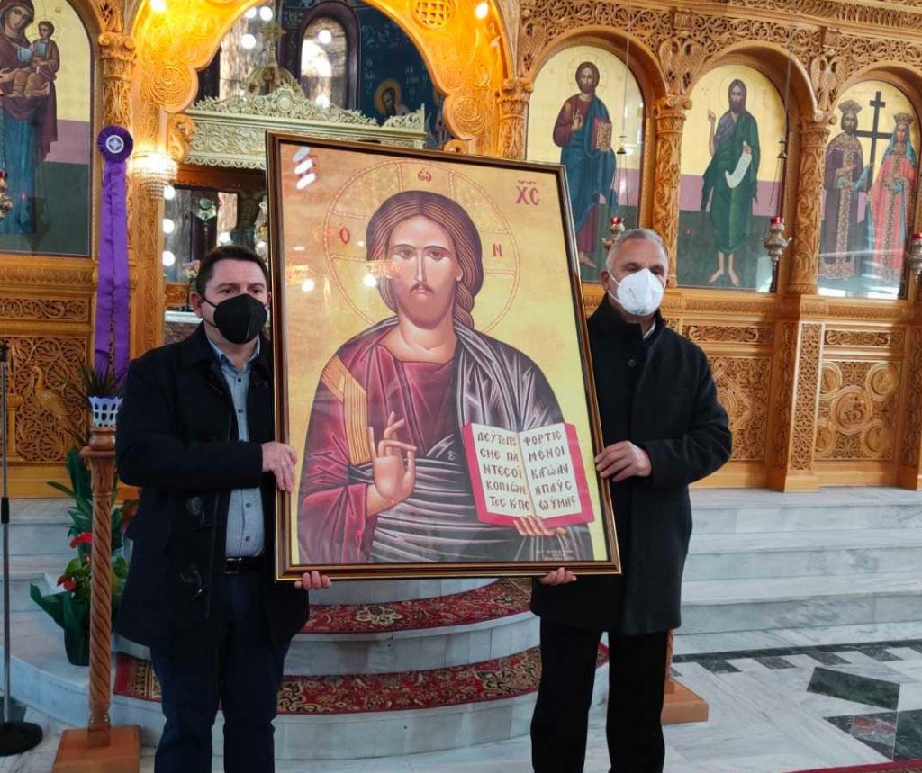 Εναπόθεσαν τις προσευχές τους, ο μεν για τη Βουλή, ο δε για τη δημαρχία της Πύλης και κατά το έθιμο και την παράδοση της Εκκλησίας μας συμμετείχαν στη Λιτάνευση των Ιερών εικόνων (… Κυριακή της Ορθοδοξίας γαρ). Διακρίνονται να κραδαίνουν την εικόνα του Ιησού Χριστού και… να προσεύχονται!!!…