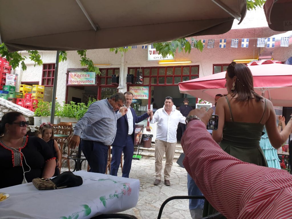 Ωρέ του ‘δωσε και κατάλαβε στο χωρό ο Κώστας ο Μαράβας. Ο δήμαρχος πάντων και πασών των Πορτινών έσυρε το χορό στο μαγευτικό Γαρδίκι αμέσως μετά τη λήψη του… αντιδώρου από τον παπα Κουμπή και μέχρις εσχάτων χόρευε!!!… Διακρίνεται ενώ κάνει… κατσιές και τον κραδαίνουν ο βουλευτής Σάκης Λιούτας και ο αντιδήμαρχός του Σωτήρης Αγγέλης…