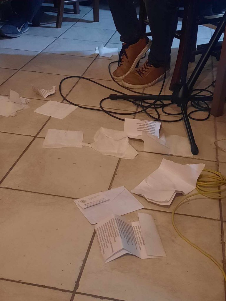 Ελλείψει δε λουλουδιών άρχισαν να ραίνουν τους καλλιτέχνες με… ψηφοδέλτια (σταυρωμένα) που είχαν αφήσει υποψήφιοι!!!… Αυτά είναι…