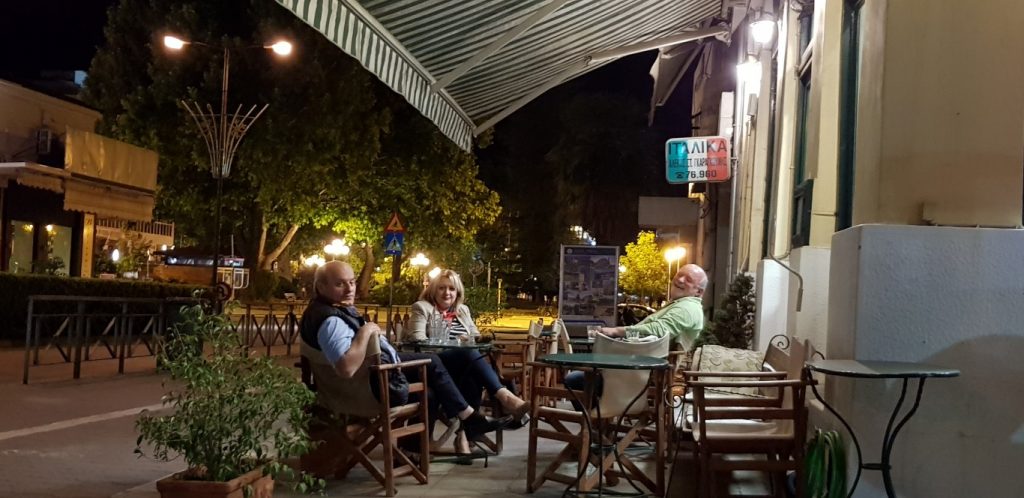 Απολαμβάνοντας το ελαφρύ αεράκι και το ψιλόβροχο, εθεάθησαν λίγο μετά τα μεσάνυχτα στο παραδοσιακό ζαχαροπλαστείο της πόλης, στου Μέγα, ο εορτάζων Αχιλλέας Μυσιρλής και η Χρύσα Ντιντή. Μεταξύ πουτίγκας και ουίσκι συζήταγαν με τον γνωστό ζαχαροπλάστη και φιλόσοφο της ζωής, Γιώργο Μέγα, όσα τους απασχολούν και τους πονούν στη πόλη ταύτη. Λέγεται ότι ίσως αυτό το βράδυ είναι καθοριστικό για η επανάσταση ενόψει των δημοτικών εκλογών του 2019….