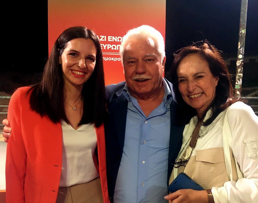 Διακρίνεται σε πρόσφατη εκδήλωση του κόμματος με την υποψήφια ευρωβουλεύτρια Όλγα Μαρκογιαννάκη (σ.σ. δικό μας κορίτσι, νύφη στα Τρίκαλα) και την Αννούλα τη Διαμαντοπούλου με την οποία είχε αντιπαραθέσεις τα σκληρά χρόνια του ΠΑΣΟΚ, αλλά… κοινή πορεία πάντοτε για το λαό!…