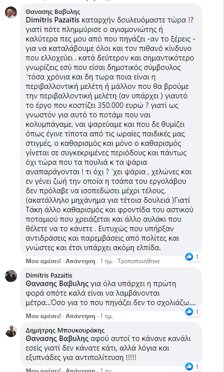 Διαδικτυακή κόντρα μεταξύ του Τάκη Παζαϊτη και του Θανάση Βαβύλη για τις εργασίες ανάδειξης του Αγιαμονιώτη ποταμού.