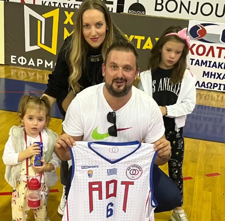 Στη φωτό διακρίνεται… και με τις τέσσερις!!!… Ναι, ναι τέσσερις… Τη σύζυγό του Σία Κούρεντα, τις κόρες τους Θαλένια και Μελίνα και φυσικά τον ΑΟΤ τη φανέλα του οποίου κρατάει. Όλα τα άλλα… είναι περιττά για τον ίδιο…