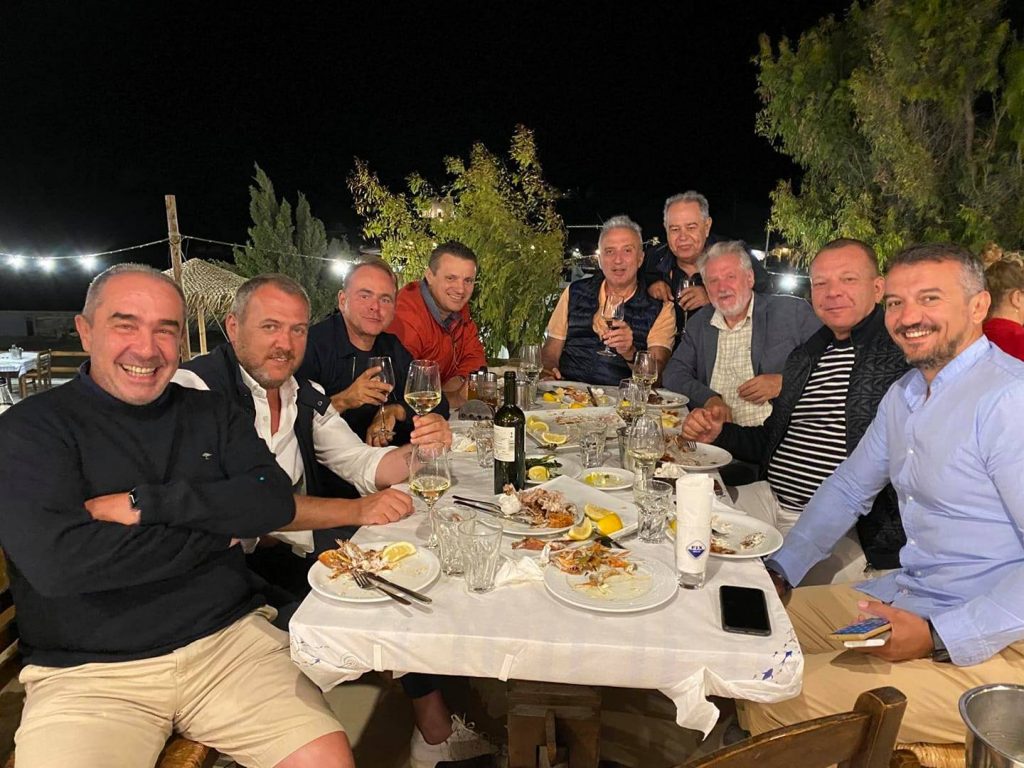 Το μέρος βρέθηκε, στην καρδιά του Αιγαίου κιόλας, το μαγευτικό Κουφονήσι (… το ζήσαμε στα καλά του χρόνια προ 25ετίας!!!) και εκεί καθιερώθηκε να γίνεται καθ’ έτος, τέτοια εποχή, Σεπτέμβρη μήνα, η σύναξη των αντρών. Τα χρόνια πέρασαν, οι καιροί και οι… Κυβερνήσεις άλλαξαν, η παρέα μεγάλωσε και έγινε ακόμη πιο φιλόξενη σε νέες ιδέες, από ανθρώπους γνωστούς και λίαν αγαπητούς. Προστέθηκαν ο Μιχάλης Σαράντης (ΟΛΥΜΠΟΣ), ο Νίκος Κουφόπουλος (πρόεδρος και διευθύνων σύμβουλος της ΒΙΟΣΕΡ), ο ιατρός Λευτέρης Καραγιώργος, ο επίσης ιατρός και γνωστός μας εκ της τηλεοράσεως όστις τυγχάνει διευθυντής της ΜΕΘ του Παπανικολάου, Νίκος Καπραβέλος και ο επιχειρηματίας Δημήτρης Μαγκούτης.