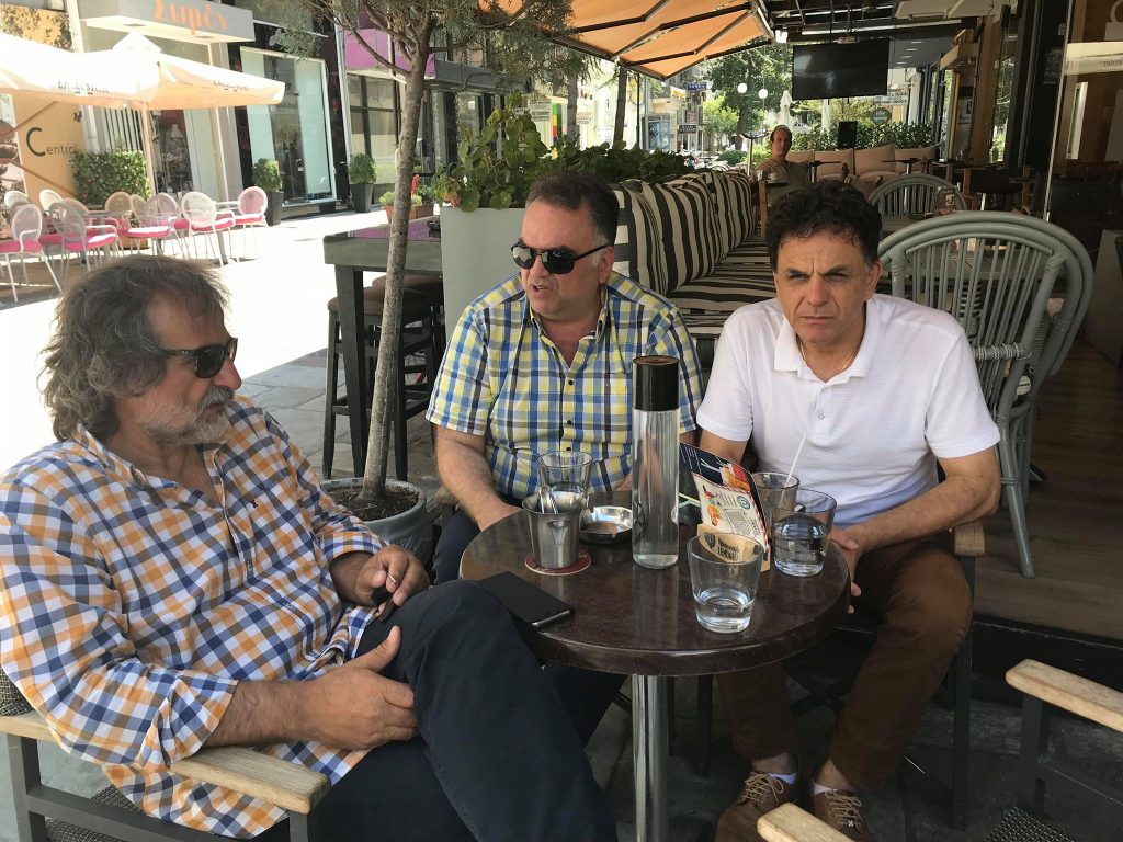 … παραλία Ασκληπιού εθεάθησαν το πρωί του Σαββάτου οι Θεόφρονες, Ντίνος Μπάρδας, Χρήστος Γακόπουλος και Ιωάννης Κουτσονάσιος ο ιατρός. Οι δυο πρώτοι παραμένουν εδώ, στις επάλξεις, και τούτες τις μέρες του Αυγούστου δίνοντας λύσεις σε μικροπροβλήματα που προκύπτουν ανά το Νομό, αναπληρώνοντας επαξίως τον Μιχαλάκη. Ο ιατρός δε παραμένει κοντά στο λαό του, όπως πάντα έκανε και όπως ανέκαθεν το καθήκον τον καλούσε. Τους σφίγγει και μια ανάλυση πάντως, όπως φαίνεται καθαρά στη φωτό του trikalavoice.gr…