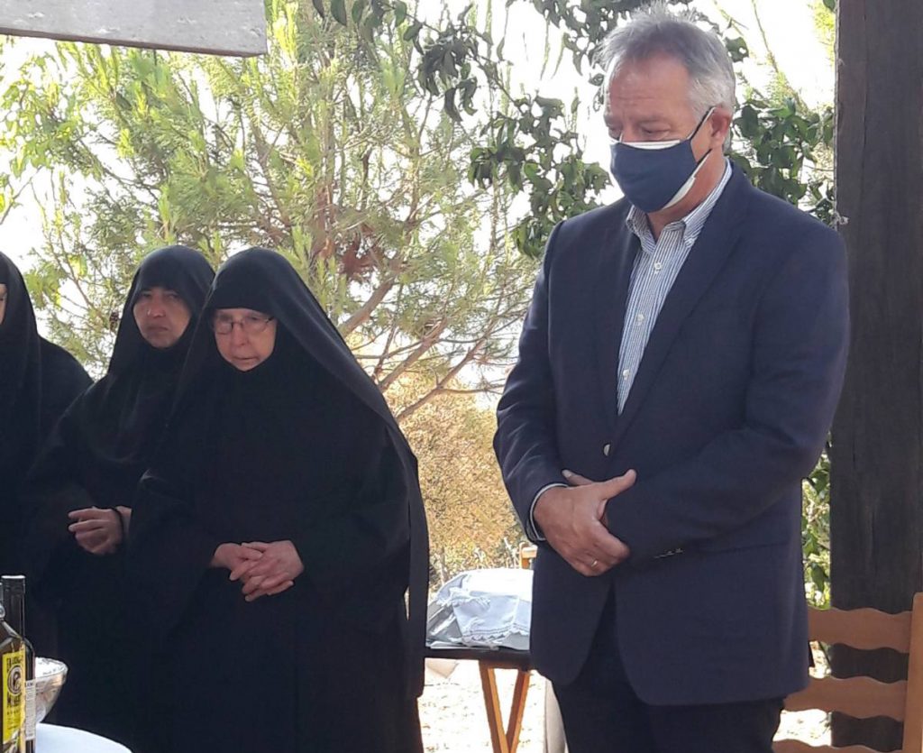Μιχαλάκης προσευχόμενος για τις… αμαρτίες του σύμπαντος κόσμου. Ο λίαν αγαπητός στα πλήθη αντιπεριφερειάρχης Τρικάλων διακρίνεται προσευχόμενος παρά τη Ηγουμένη Θεοκτίστη, της Παναγίας Βυτουμά.