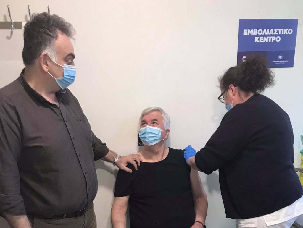 Ο γιατρός της καρδιάς και του… ποδοσφαίρου μας, ο Γιώργος ο Κολώνας ήταν ο χιλιοστός που εμβολιάστηκε κατά του covid-19 στο Κέντρο Υγείας Πύλης.