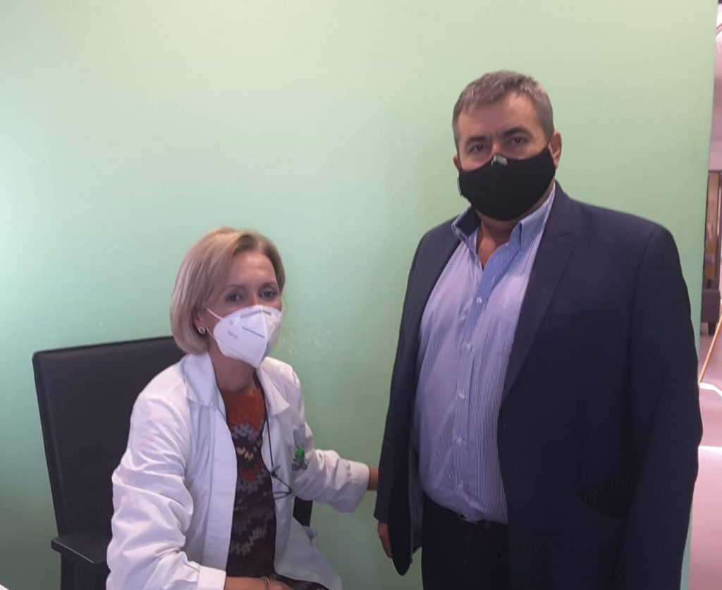 Ο Κώστας Μαράβας, πλήρως εμβολιασμένος από την περασμένη άνοιξη, έκανε την Τρίτη και την αναμνηστική δόση της Pfizer. Στο Εμβολιαστικό Κέντρο της Πύλης τον υποδέχθηκε η γιατρός και στενή του συνεργάτιδα Χαρά Καλλιώρα, αντιδήμαρχος Υγείας της Πύλης, η οποία δίνει τη μάχη με τον κορωνοϊό από την πρώτη γραμμή.