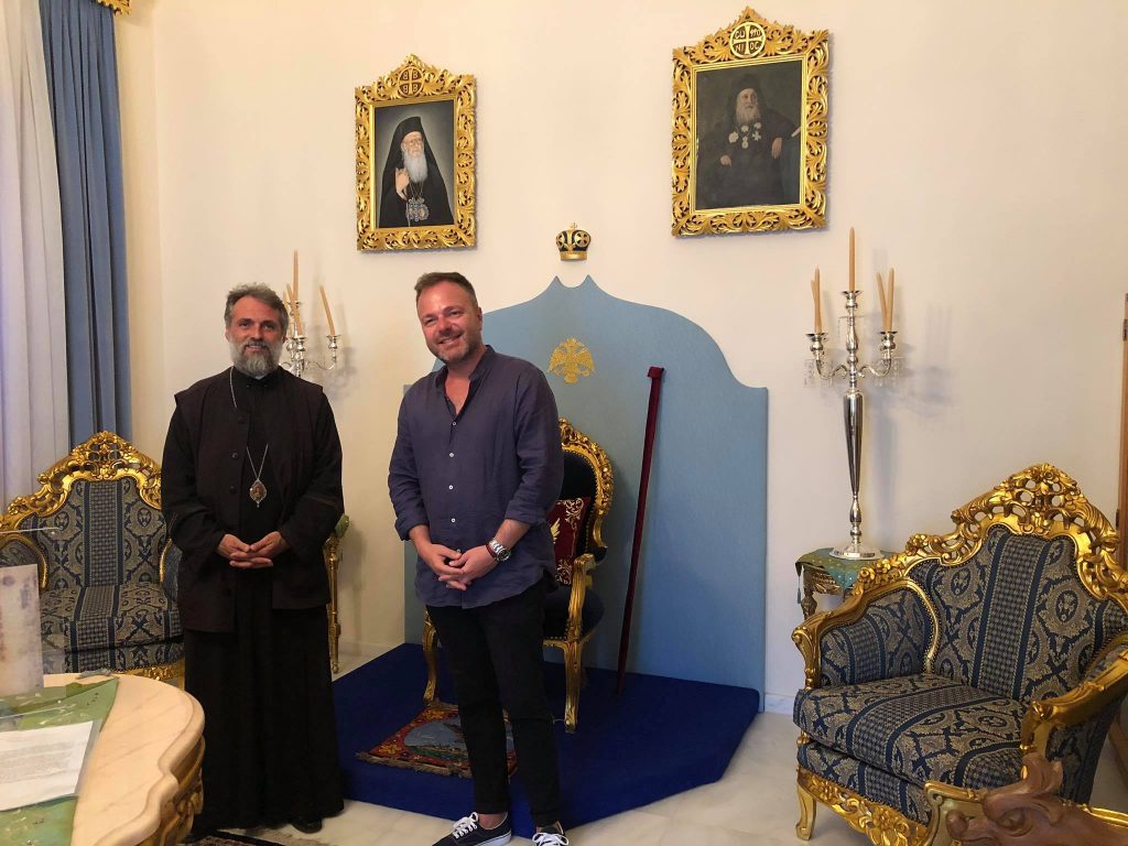 Μας εκπλήσσει καθώς την τελευταία φορά τον είχαμε αφήσει στο Ιόνιο και στην Ιθάκη. Τέλος πάντων στη νήσο Λέρο και αφού έκανε τζετ σκι αφιέρωσε τον περισσότερο χρόνο του για τις πνευματικές του αναζητήσεις. Βρήκε τον εκεί διακονούντα Επίσκοπο Στρατονικείας Στέφανο, ο οποίος είναι γέννημα θρέμμα Τρικαλινός. Ξεναγήθηκε στους χώρους του Επισκοπείου και εν πλήρη συντριβή άνοιξε την καρδία του σε αυτόν. Απήλθε ανακουφισμένος για άλλες πολιτείες ή για την ακρίβεια… άλλες νήσους!!!…