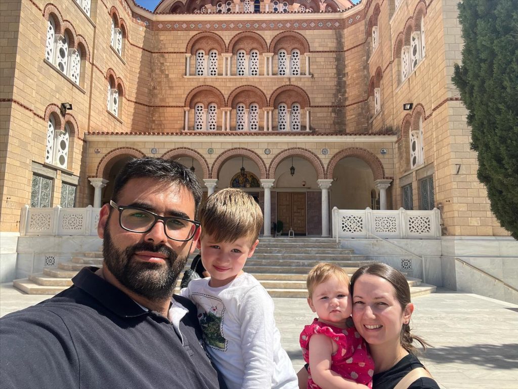 Επέστρεψε στα πάτρια έμπλεος εμπειριών και έτοιμος να δουλέψει πολύ, σε μια απαιτητική και δύσκολη χρονιά. Διακρίνεται με τη σύζυγό του Ξένια και τα δυο τους παιδιά έμπροσθεν του επιβλητικού Ιερού Ναού του Αγίου…