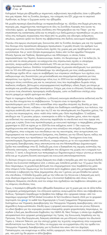 Ιδιαίτερη αναφορά έκανε ο πρωθυπουργός Κυριάκος Μητσοτάκης στον υπουργό Ψηφιακής Διακυβέρνησης Δημήτρη Παπαστεργίου στην τακτική, εβδομαδιαία του, ανασκόπηση  που δημοσιεύει κάθε Κυριακή.