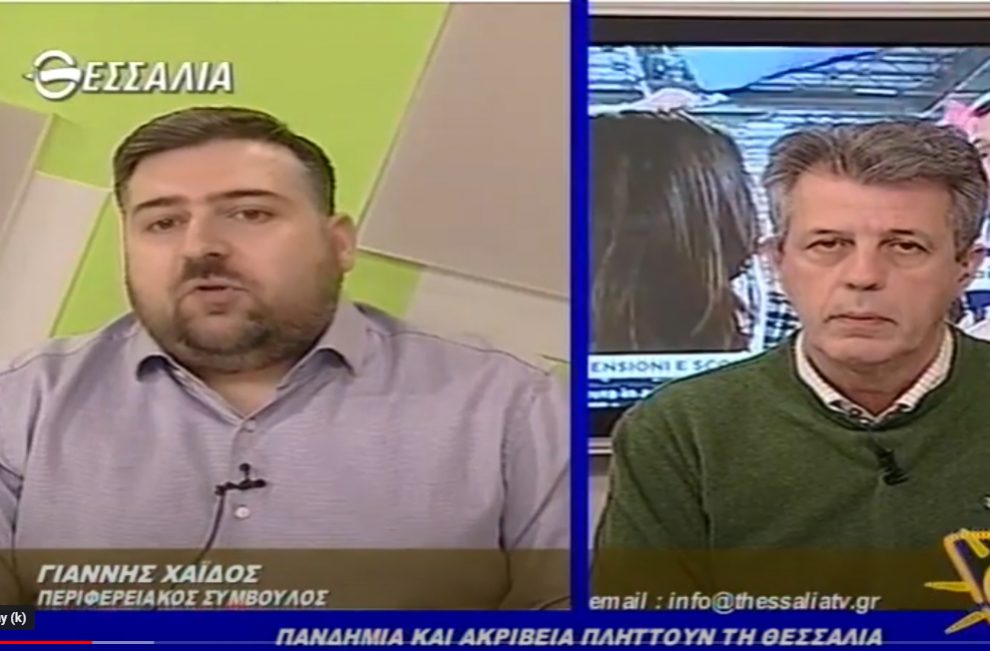 Τηλεοπτική παρέμβαση του περιφερειακού συμβούλου Θεσσαλίας για το μείζον θέμα της πανδημίας και τη διαχείριση σε επίπεδο Θεσσαλίας, αλλά και για την ακρίβεια που πλήττει όλα τα νοικοκυριά.