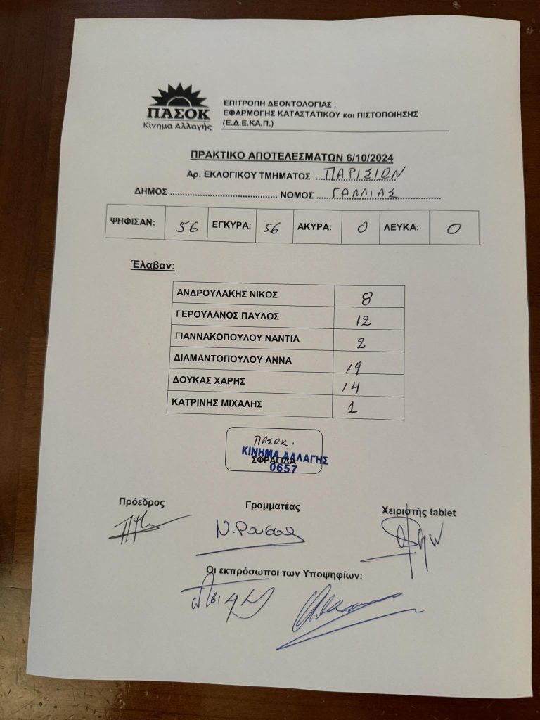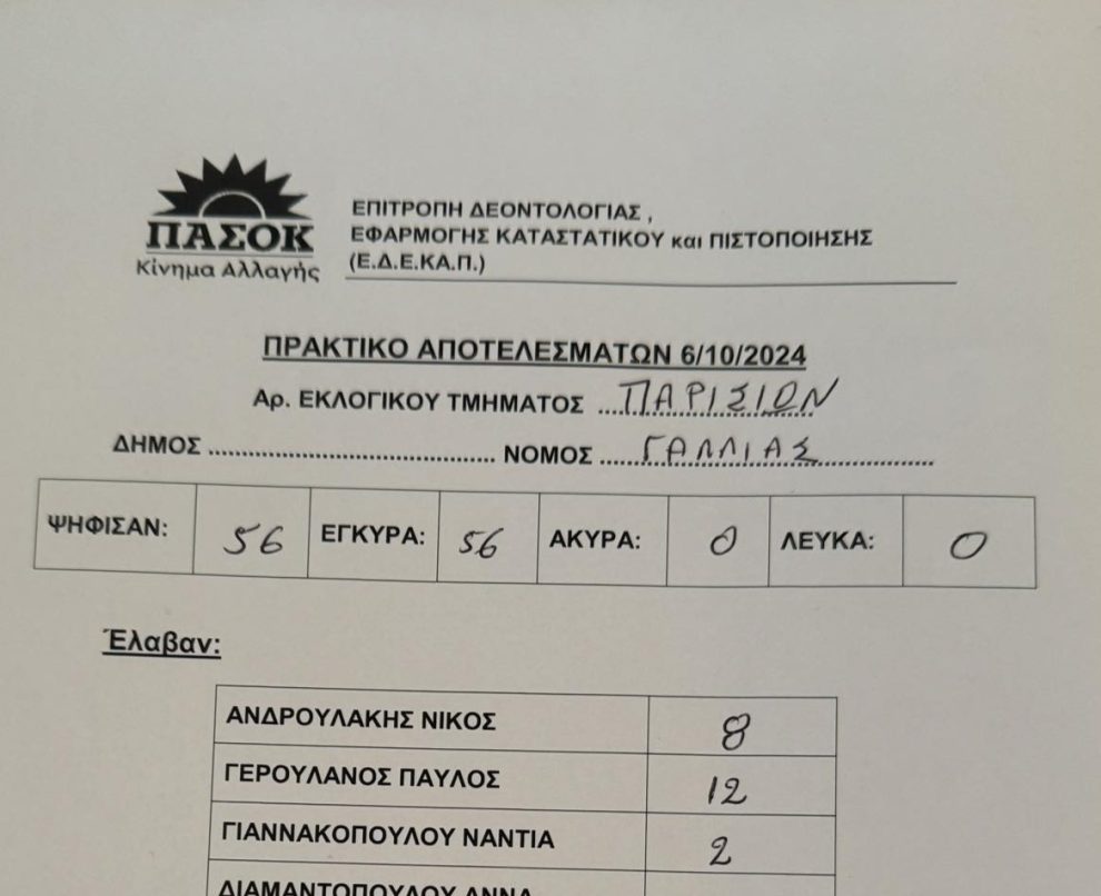 Το πρώτο εκλογικό αποτέλεσμα για την εκλογή προέδρου του ΠΑΣΟΚ έρχεται από το Παρίσι!!!