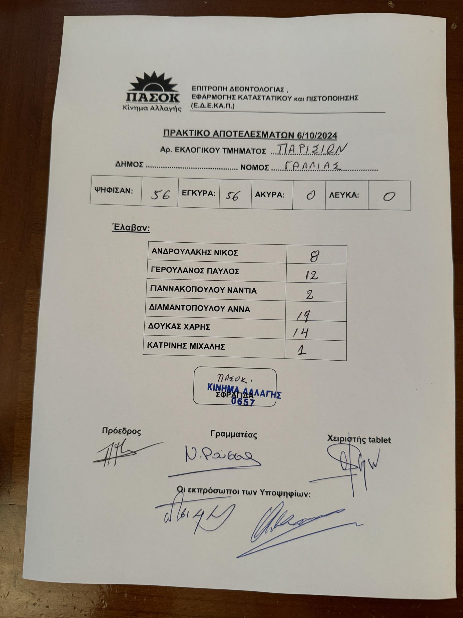 Όπως αποκαλύπτει το trikalavoice.gr ψήφισαν 56 άτομα ως παρακάτω: