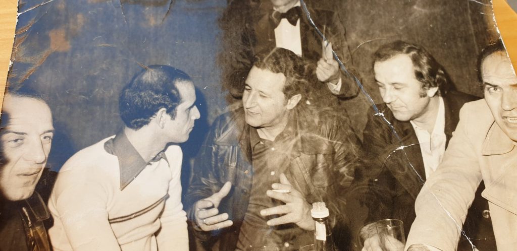 Εμβληματικές μορφές της εποχής. Κάπου στα τέλη της δεκαετίας του ΄70 διακρίνονται στον «Διογένη» στη λεωφόρο Συγγρού ο κορυφαίος, τότε, φαρμακοποιός της πόλης και εκ των διοικητικών ηγετών του ΑΟΤ, Γιάννης Σακκάς (στη μέση), με τον νεαρό τότε, σπουδαίο Δημήτρη Μητροπάνο και δεξιά τον θρυλικό Τάκη Δουλόπουλο, επιχειρηματία και επίσης σπουδαίο ποδοσφαιρικό παράγοντα της εποχής. Περνάνε τα χρόνια…