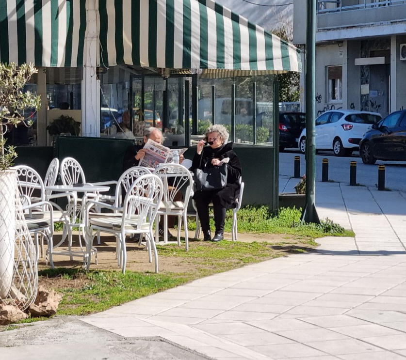 Διακρίνεται στην παραδοσιακή γωνιά του στις όχθες του Ληθαίου, συντροφιά με την αιώνια αγαπημένη του Ρένα, να απολαμβάνει καφέ, ήλιο και ενημέρωση. Διακριτικά δίνει κατευθύνσεις και στον υιό του τον αγαπητό, τον Γιώργο, ο οποίος φτάνει επιτέλους η ώρα που θα τον διαδεχθεί στο βουλευτικό και αύριο-μεθαύριο υπουργικό αξίωμα. Γι’ αυτό ζούμε, για να το δούμε…