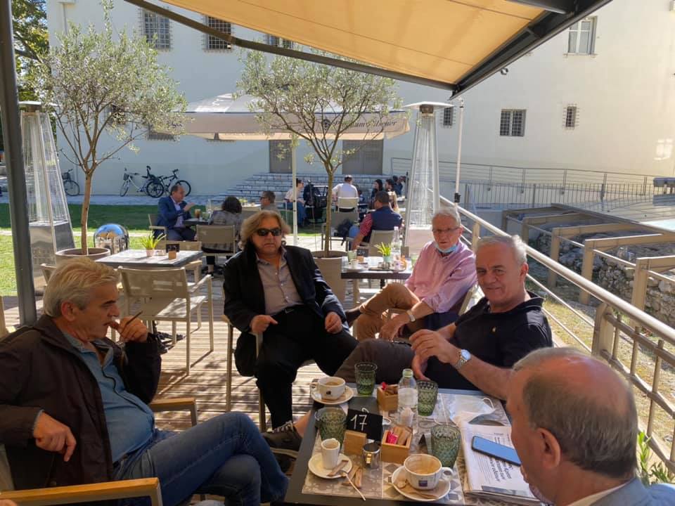 Με ευλάβεια και προσοχή ακούνε τον βουλευτή Σάκη Παπαδόπουλο να τους ομιλεί περί… ουμανισμού και σοσιαλισμού, οι θρυλικοί ΠΑΣΟΚτζήδες Θωμάς Χαχάμης, Σωτήρης Μπλέτσας και Σωτήρης Καραγιώργος.
