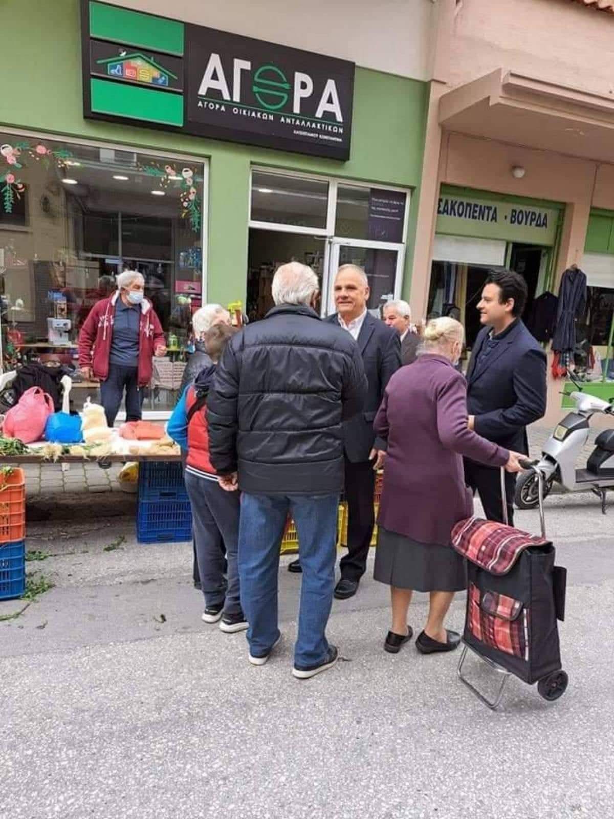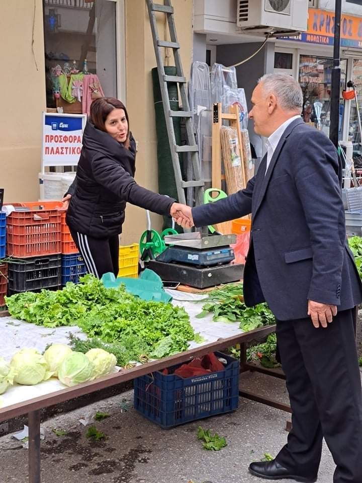 Στη λαϊκή αγορά της Καλαμπάκας βρέθηκε το πρωί της Μεγάλης Πέμπτης ο Ηλίας Βλαχογιάννης. Ο πρώην νομάρχης και βουλευτής αντάλλαξε ευχές με παραγωγούς, πωλητές και πολίτες, για τις Άγιες ημέρες του Πάσχα.