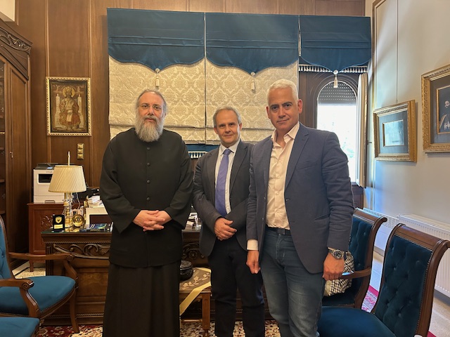 Μεταξύ αυτών με τον Μητροπολίτη Τρίκκης Χρυσόστομο τον οποίο και επισκέφτηκε στο Επισκοπείο, μαζί με τον συγγραφέα.