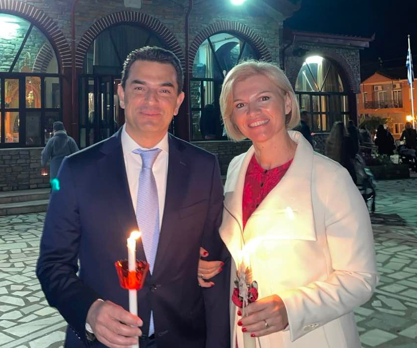 Οικογενειακώς έφτασε από το απόγευμα του Μεγάλου Σαββάτου με τη σύζυγό του Ειρήνη και τα κορίτσια τους στην Κατερίνη. Εκεί είπε το “Χριστός Ανέστη” και εκεί ανέλαβε δυνάμεις την Κυριακή του Πάσχα, ήρεμα και ήσυχα. Τι να σου κάνει κι ο υπουργός…