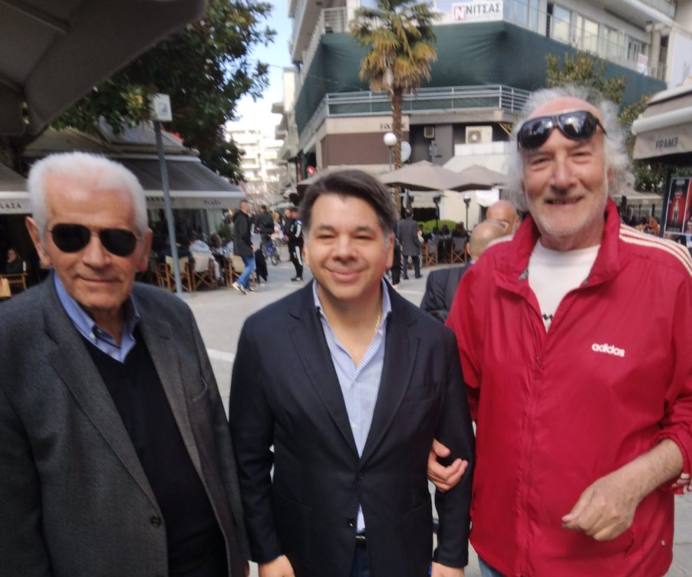Στάθηκε ιδιαίτερα και έκανε συζήτηση και στα… Αμερικάνικα με τον Λευτέρη Παπαδάκη, που διατηρούσε restaurant στις ΗΠΑ για χρόνια, και τον τέως αντινομάρχη, βαμμένο στα κόκκινα, Αχιλλέα Αλεξίου.