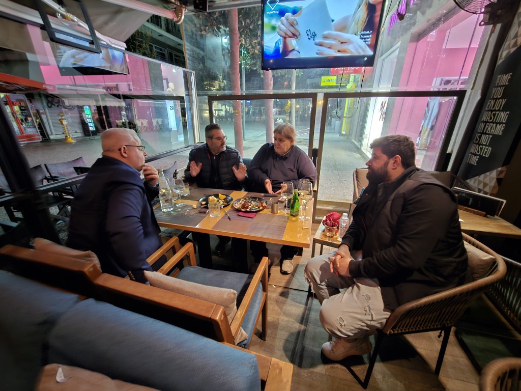 Καλή ώρα όπως τα παλληκάρια της φωτογραφίας παραπάνω τα οποία εθεάθησαν μεταμεσονύχτιες ώρες της Δευτέρας (… ω, ναι!) σε μια γωνιά στο FRAME να πολιτικολογούν. Όπως καταγράφει το trikalavoice.gr την Αβραμιαία φιλοξενία του Κώστα Μπάνια απήλαυσαν ο αντιδήμαρχος Τρικκαίων και ιδιαίτερα φιλόδοξος για το μέλλον Φόρης Ρόμπος (κλίματος Μιχαλάκη), ο επιτελάρχης της απερχόμενης διοίκησης της Νομαρχίας Τρικάλων Γιώργος Καρανάσιος και ο ιατρός των οφθαλμών ημών, ιδιαίτερα ανήσυχος σοσιαλιστής ο οποίος διατηρεί τους δικούς του οφθαλμούς στραμμένους στο… Δημαρχείο, Αντώνης Μεταξιώτης (μπατζανάκης Κρεμμύδα). Πόσο μακριά είναι το 2028;… Δυο μακαρονάδες με οσομπούκο, δρόμος!!!…