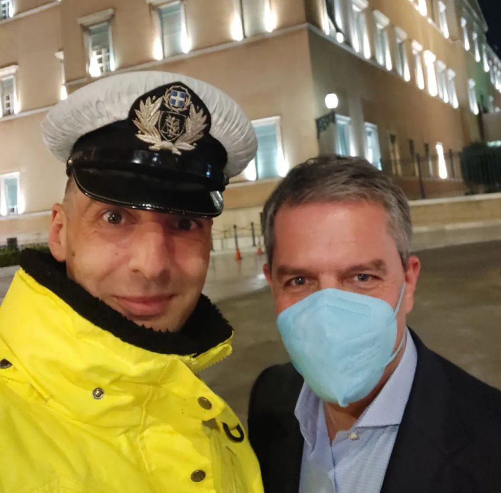 Άνθρωπός μας, μας μεταφέρει ότι είχε σημαντικές συναντήσεις εκεί και ότι έφυγε λίαν ικανοποιημένος βάζοντας υψηλούς μελλοντικούς στόχους. Διακρίνεται στον περίβολο της Βουλής με τον νεαρό Τρικαλινό αστυνομικό Βασίλη Παπαθανασίου, υιό του Σωτήρη και της Ασπασίας του θρυλικού ουζερί “Ο Πεζόδρομος” επί της Καραϊσκάκη.