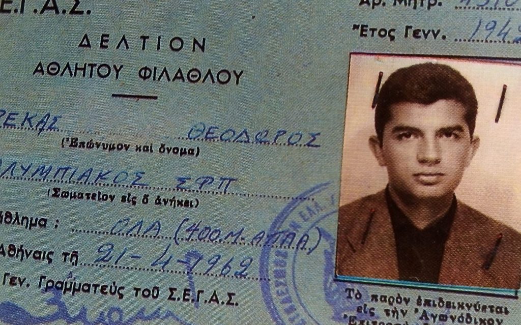 Ξέρατε όμως ότι υπήρξε και καλός αθλητής; Ω, ναι!… Και μάλιστα φόρεσε τη φανέλα του Ολυμπιακού (!!!) καθώς τη δεκαετία του ΄60 υπήρξε αθλητής του στην ομάδα στίβου (στα 400 μέτρα). Στη φωτό παραπάνω το δελτίο του, από το αρχείο του φίλου Μεγαρχιώτη Βαγγέλη Τζιατζιά…