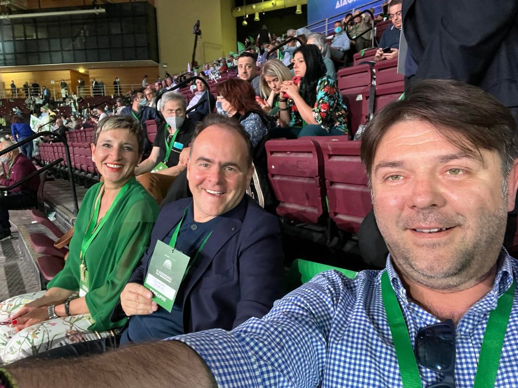 Στο Συνέδριο του κόμματος, όπως καταγράφει το trikalavoice.gr συμμετέχουν δεκάδες σύνεδροι και παρατηρητές από τα Τρίκαλα. Διακρίνονται στη φωτό ο Γιώργος Οικονόμου, που θα είναι και υποψήφιος για την Κεντρική Επιτροπή, ο υποψήφιος δήμαρχος Μετεώρων Σωτήρης Παπαχρήστος και η Μαρία Γεωργούλα.