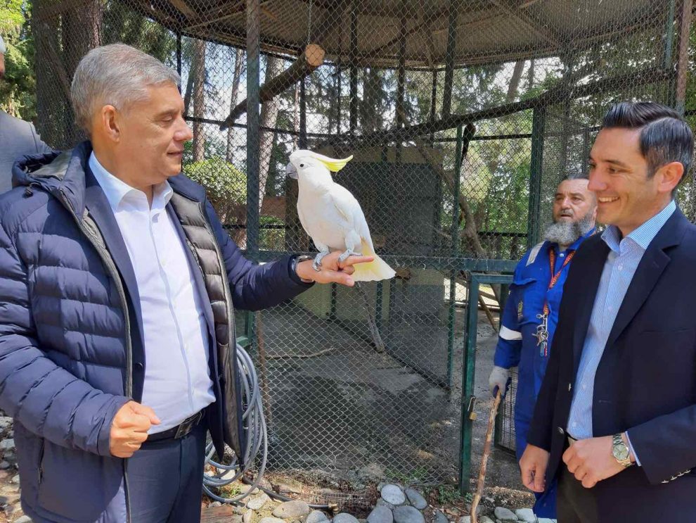 Ξεναγήθηκε από τον πρόεδρο της “Αστικής Ανάπτυξης” Γιώργο Ζιώγα, ο οποίος και εργάζεται σκληρά τη τελευταία 2ετία για τη δημιουργία του Forest Park και έφτασαν στον παπαγάλο τον Μαξ, του οποίου η αγαπημένη λέξη είναι αυτή… όλων των Ελλήνων (“μ@λ@κ@ς”!!!). Ευτυχώς με τον περιφερειάρχη… ήταν συγκρατημένος. Για δείτε το video του trikalavoice.gr:
