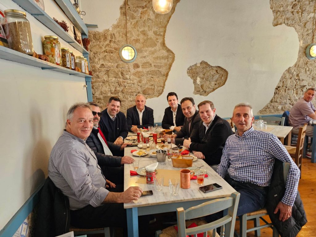 Κάπως έτσι, λίαν μεσημβρίαν του Μεγάλου Σαββάτου ο πρώην νομάρχης και υποψήφιος βουλευτής της Ν.Δ. Ηλίας Βλαχογιάννης τραπέζωσε εκλεκτούς φίλους και συγγενείς επ’ αφορμή της ονομαστικής εορτής του μικρού του εγγονού Αποστόλη-Λεωνίδα Βλαχογιάννη (… 15 Απριλίου η Εκκλησία μας τιμά τη μνήμη του Αγίου Λεωνίδα). Στο νεοτσιπουράδικο “Φιρφιρί”, λοιπόν, βρέθηκαν προσκεκλημένοι του Βλαχογιάννη ο υιός του ο αγαπητός Γιώργος Βλαχογιάννης, ο και αν. γραμματέας προγράμματος της Ν.Δ., ο γαμπρός του ο αγαπητός Θανάσης Κοντογεώργης, ο και γενικός γραμματέας της Κυβερνήσεως, ο αντιπεριφερειάρχης Τρικάλων Χρήστος Μιχαλάκης, ο δήμαρχος Τρικκαίων Δημήτρης Παπαστεργίου, ο δημοσιογράφος του STAR και του “Πρώτου Θέματος” Γιώργος Ευγενίδης, ο επιτελάρχης της Νομαρχίας Γιώργος Καρανάσιος και ο “άγιος της χωροφυλακής” και στενός συνεργάτης του Ηλία Βλαχογιάννη, Γιάννης Γατσάς.