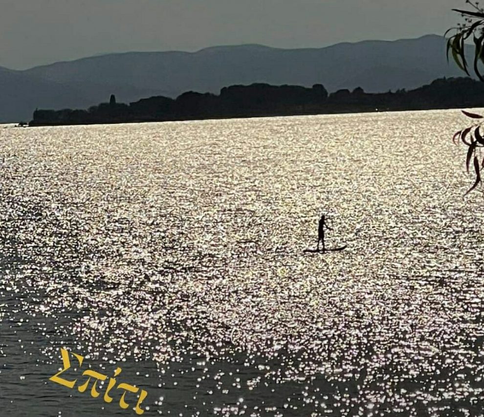 Κολύμπι, διάβασμα και… σέρφινγκ!!!… Καλή ώρα διακρίνεται να σκίζει τα νερά του Παγασητικού ενώ ο ήλιος βασιλεύει!!!…