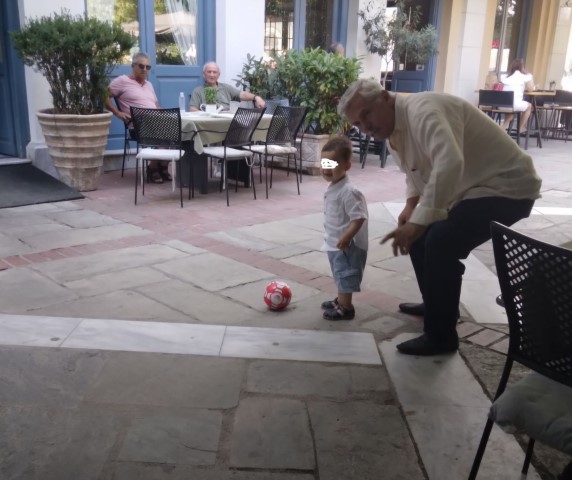 Η αιώνια αγαπημένη του Στέλλα μας έλεγε πάντοτε ότι πίσω από αυτό το πρόσωπο του πολιτικού κρύβεται μια τρυφερή ψυχή. Στη φωτό παραπάνω αυτή μας αποκαλύπτεται καθώς ο ίδιος παίζει με το εγγονάκι του σε πλατεία της πόλης. Ωραίες στιγμές…