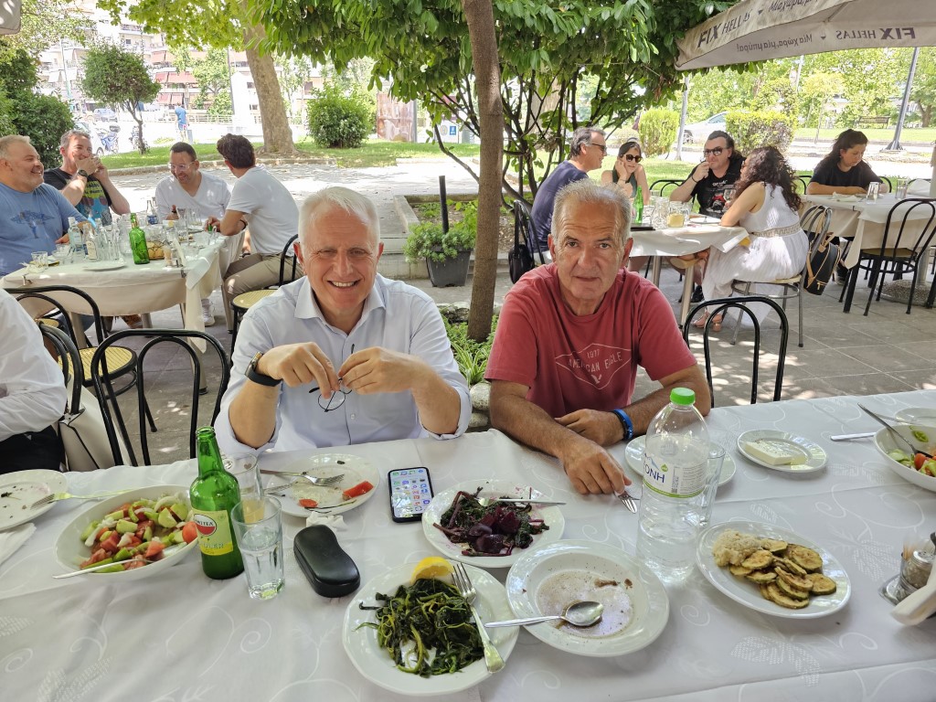Αυλαία προεκλογικής περιόδου με χαλαρή διάθεση, χαμόγελα και κουβέντα πέραν της πολιτικής το μεσημέρι του Σαββάτου σε γνωστή ταβέρνα των Τρικάλων.