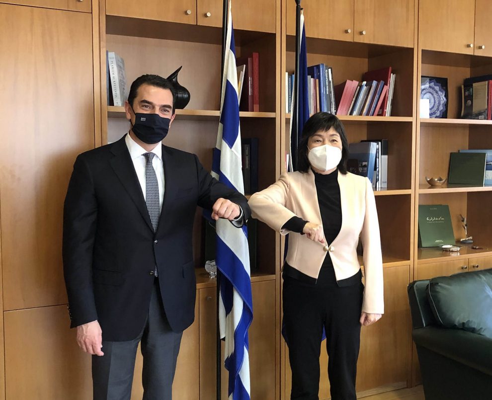 Οι Πρέσβεις όλων των Κρατών συζητούν μαζί του το πως θα εξελιχθεί η συνεργασία των χωρών, καθώς έχουν στρατηγικά συμφέροντα στην περιοχή. Την Πέμπτη ο Κώστας Σκρέκας υποδέχθηκε στο γραφείο του την Πρέσβειρα της Λαϊκής Δημοκρατίας της Κίνας, Zhang Qiyue. Συζητήσανε για τις πολύ καλές διμερείς σχέσεις Ελλάδας – Κίνας και την πορεία των κινεζικών επενδύσεων στη χώρα μας και πολλά άλλα!… Κι επειδή χειραψίες δεν επιτρέπονται… έριξαν κι από μια αγκωνιά, για το καλό…