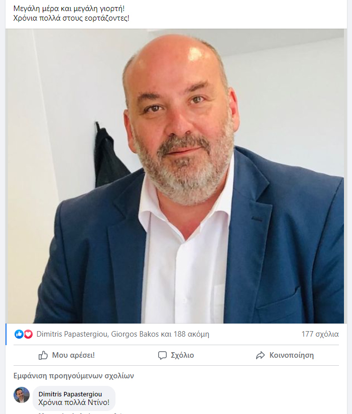 Είπαμε να έχουμε πολιτικό πολιτισμό, να κρατάμε ένα επίπεδο, αλλά ετούτοι εδώ… αγαπιούνται σφόδρα!!!… Ομιλούμε περί του δημάρχου Παπαστεργίου και του επικεφαλής της αντιπολίτευσης του Δήμου Τρικκαίων Κρεμμύδα. Ο τελευταίος ακολουθεί ήπια τακτική απέναντι στη Δημοτική Αρχή (… και δέχεται πυρά εκ των έσω γι’ αυτό) κι ο δήμαρχος σε κάθε ευκαιρία τονίζει την ωριμότητα με την οποία ο Κρεμμύδας κινείται. Είναι πολλά δε τα μεταξύ τους… πειράγματα και δημοσίως στο facebook. Τόσο αγαπιούνται που… μεταμεσονύχτιες ώρες ο Παπαστεργίου έσπευσε από τους πρώτους να ευχηθεί στον Κρεμμύδα επί της ονομαστικής του εορτής, με το χαϊδευτικό του μάλιστα “Ντίνο”…