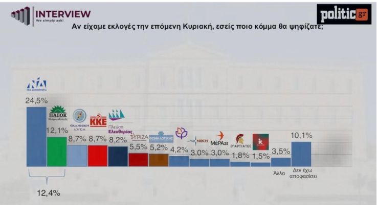 Το ποσοστό των αναποφάσιστων ψηφοφόρων είναι στο 10,1%.