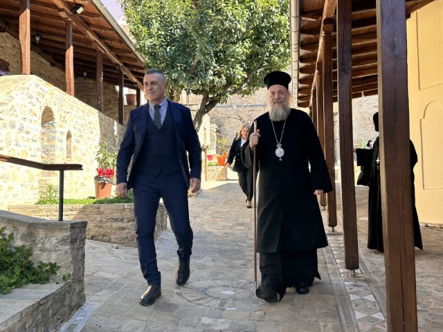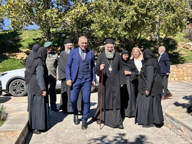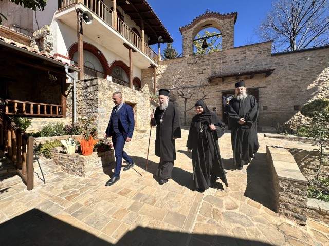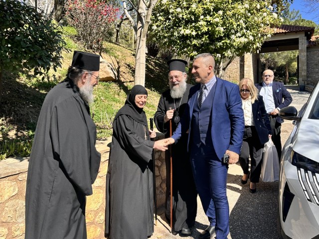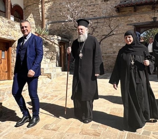 Την υποδοχή πλαισίωσαν η Ηγουμένη της Ιεράς Μονής, Γερόντισσα Θεοφυλάκτη και η σεβαστή αδελφότητα, με τον περιφερειάρχη να εκφράζει τη τη χαρά του, καθώς επισκέφθηκε για πρώτη φορά την Ιερά Μονή. Το γεύμα που παρατέθηκε ήταν νηστίσιμο καθώς διανύουμε την περίοδο της Αγίας και Μεγάλης Τεσσαρακοστής και το μενού περιλάμβανε σύμφωνα με πληροφορίες του trikalavoice.gr γαριδόσουπα, σουπιές με χόρτα, καλαμάρια, πίτες και δροσερές σαλάτες.