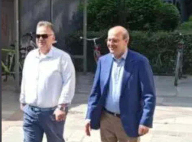 Και όποτε χρειάζεται κάποια φώτο ανασύρεται από το συρτάρι, όπως για παράδειγμα με τον αντιπρόεδρο της εθνοσωτηρίου κυβερνήσεως Κωστή Χατζηδάκη με τον οποίο διακρίνεται στη φωτό παραπάνω σε ανέμελο περίπατο…