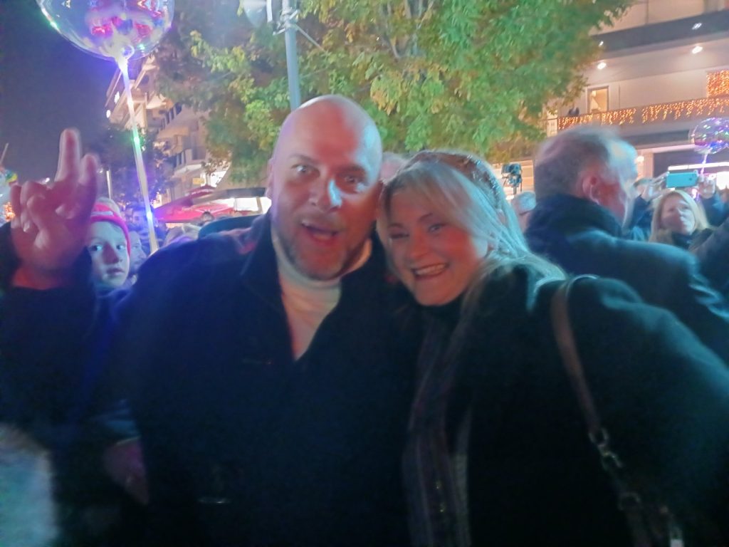 Διακριτικό το ζεύγος Παπανδρέου-Νάτσινα στη φωταγώγηση του Χριστουγεννιάτικου δέντρο του των Τρικάλων.