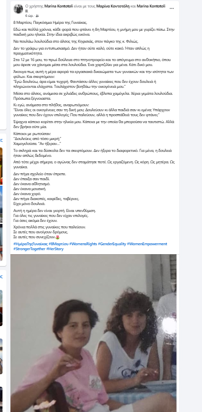 Άκουγα πως αυτή η μέρα αφορά τα εργασιακά δικαιώματα των γυναικών και την ισότητα των φύλων. Και σκεφτόμουν:
