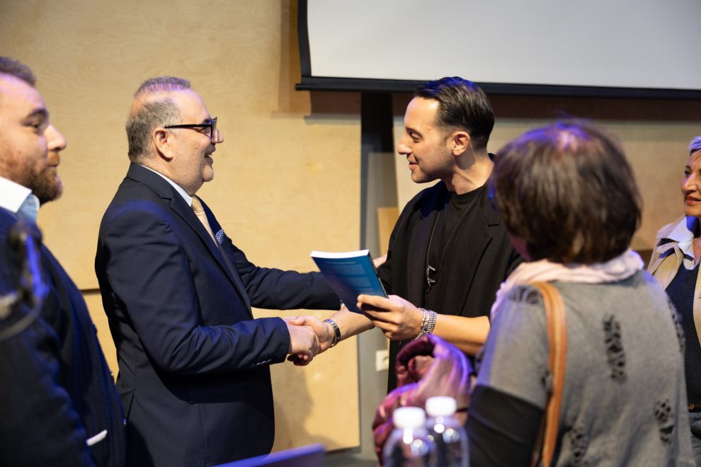 Ο νεαρός δημοτικός σύμβουλος προορίζεται για αντιδήμαρχος το ερχόμενο καλοκαίρι και έως τότε μπορεί να εκμεταλλευτεί το χρόνο για να μελετήσει πνευματικά βιβλία, όπως αυτά του καταξιωμένου συγγραφέα Θοδωρή Σπηλιώτη, με τον οποίο διακρίνεται στη φωτό παραπάνω κατά την πρόσφατη εκδήλωση παρουσίασης βιβλίου του στα Τρίκαλα.