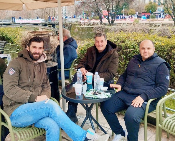 Διακρίνονται οι Λάμπρος Τζιλίνης (Τσούγκουρο) και Γιώργος Κόφφας (Καστανιά), μαζί με τον φίλο τους Βασίλη Ντόβα, να συζητούν… παραλιακά, στο KOMORE, για το κοινό τους μέλλον!… Αυτά είναι…
